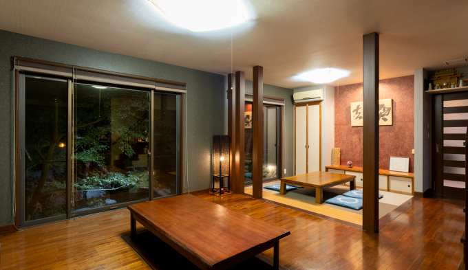 The spacious living room, approximately 20 tatami mats in size, is a luxurious space reserved for